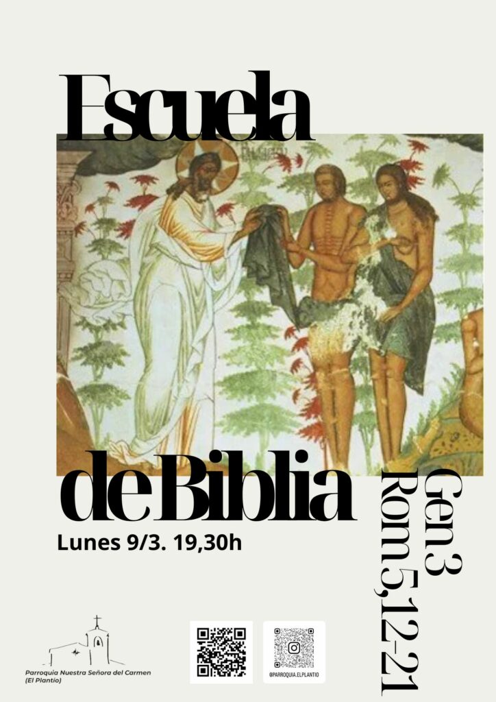 Te recordamos que, cada lunes, tienes una cita con la Escuela de Biblia. Es una buena propuesta de formación permanente para crecer en la fe desde el fundamento de la revelación, la Sagrada Escritura. Esta será la temática de la sesión del lunes día 2, a la que te invitamos a venir, a invitar a otros, a comprometerte en la formación en la fe y a animar a otros a que también se comprometan. Es nuestra responsabilidad como cristianos tener una formación responsable capaz de dar respuesta a quien nos pregunte.