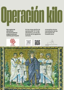 No nos olvidaremos de los que no pasan estos días en abundancia, y por eso haremos nuestra campaña Operación Kilo de recogida de alimentos en las misas del domingo 14 de diciembre, con la que colaboraremos ofreciendo lo mejor que tenemos también a los que no tienen o pasan estos días entre estrecheces y dificultades. Nosotros podemos ayudarles, programemos también esta caridad que organiza la parroquia desde Cáritas parroquial.
